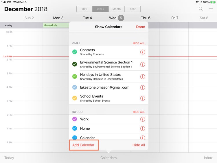 In our experience, syncing calendars from other services may not work perfectly. For example, if you have multiple calendars tied to one Google account (for work, school, or other activities), they may not all sync to your iPad. If you use this feature, we recommend paying close attention to your calendars to make sure they're syncing correctly. You can also review this article if you need additional help.