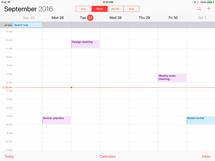 If you already have a calendar with another service—for example, Google, Yahoo!, or Outlook.com—you can sync it with the Calendar app. This allows you to view and edit all of your calendars directly from your iPad.