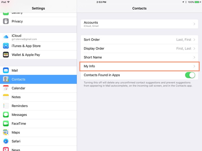 Before you can set the My Info card, you'll need to create a contact with your own name and information.