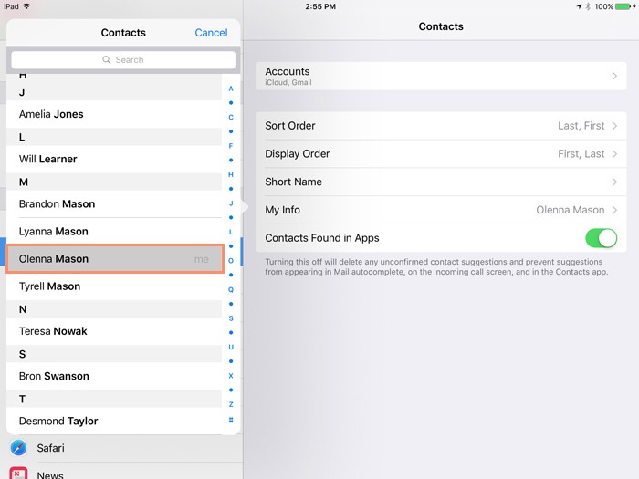 The iPad allows you to save contact information for the people you know using the Contacts app. You can use saved contact information to quickly place a FaceTime call, send an email, and more. The iPad allows you to create as many contacts as you need, so you'll always have important contact information with you.