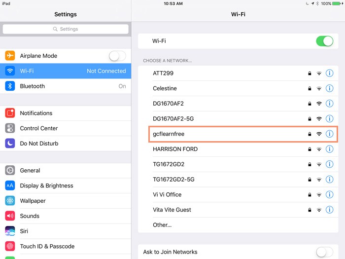 To join a network that's in range (for example, your home's Wi-Fi or a nearby public hotspot), look for it under Choose a Network. Then tap the network you want to use. If the network is secure, you'll need to enter a password in order to connect to it.