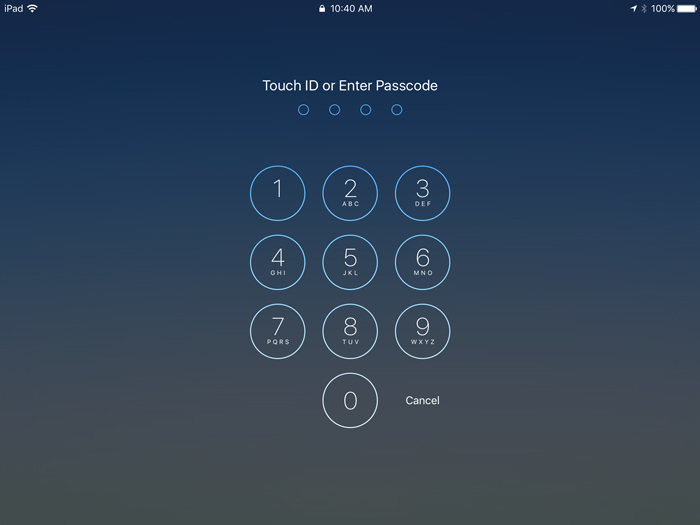 When you're ready to use the iPad, you'll need to wake it by pressing either the Sleep/Wake button or the Home button. The Lock screen will appear. From here, there are two options for unlocking your iPad: