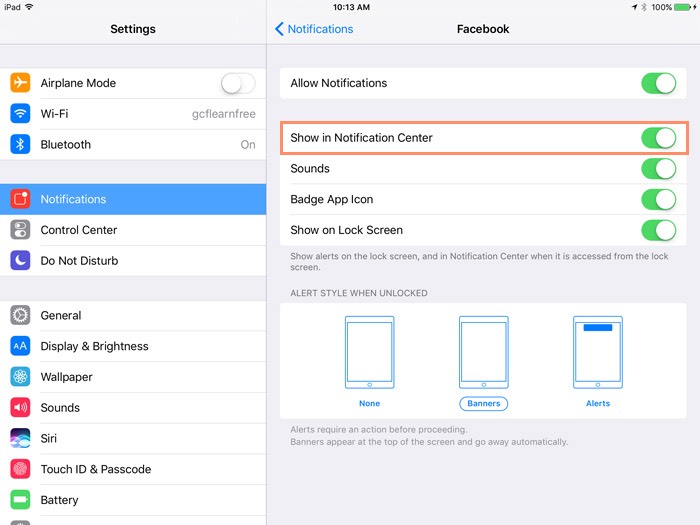Notifications alert you to many things on your iPad, including incoming messages, new emails, and calendar events. Notifications work slightly differently for each app, but they're easy to customize. In this lesson, we'll show you how to modify the Notification Center and choose which apps will appear there.