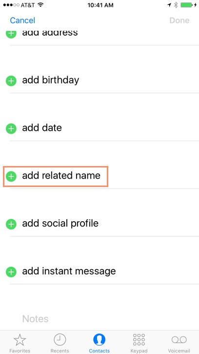You can also set a relationship label for a contact manually. When viewing the contact, tap Edit, then scroll down and select add related name.