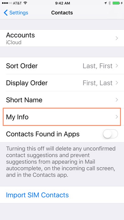 Before you can set the My Info card, you will need to create a contact with your own name and information.