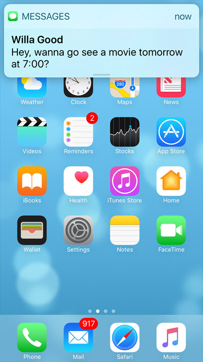 If you receive a new message when you're not in the Messages app, the iPhone will notify you in a few ways: