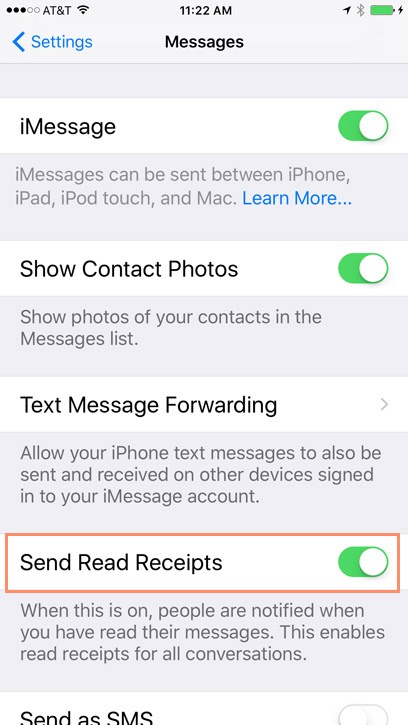 Read receipts tell other people when you've read their messages. Read receipts don't appear on your device—they appear on your friends' devices instead, so they can see exactly when you've read their messages. If your friends have read receipts turned on, you can also see when they've viewed your messages. In our example below, we can see that the recipient read our text message at 11:18 AM.