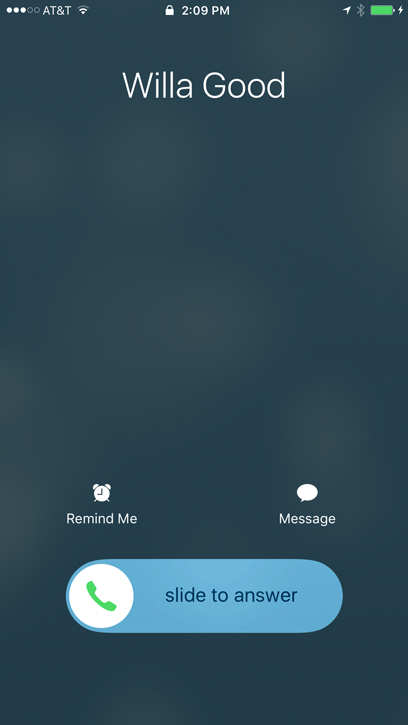 You can also tap Message to reply with a text message or Remind Me to set a reminder to call that contact back later.
