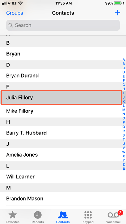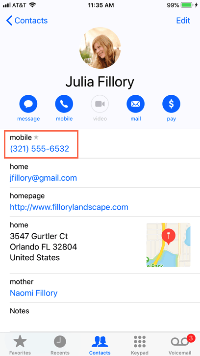 Instead of dialing numbers manually, you can save phone numbers to your phone as contacts. We'll talk more about contacts in our lesson on adding and managing contacts.