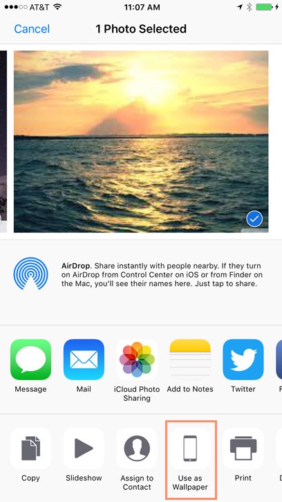 If you're already looking at pictures in the Photos app, you can set any picture as the wallpaper without opening Settings. Simply select the picture, tap the Share button in the bottom-left corner, then select Use as Wallpaper.