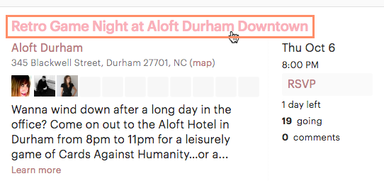 - Once you've found an event you'd like to attend, click the event title to view its page.