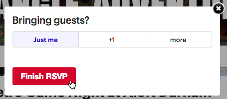 - A pop-up will appear asking if you're bringing guests. Select the option that applies, then click Finish RSVP.