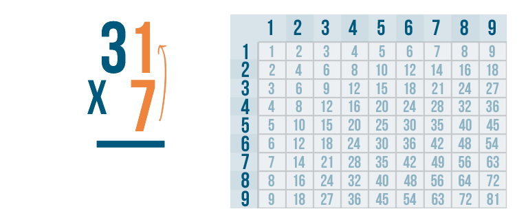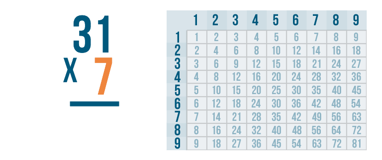 We'll use the times table to solve for 7 x 3.