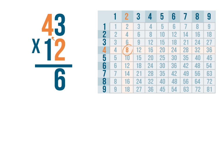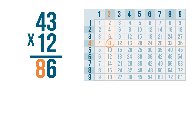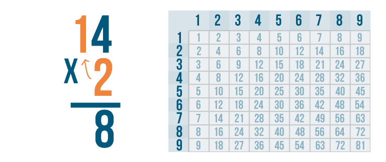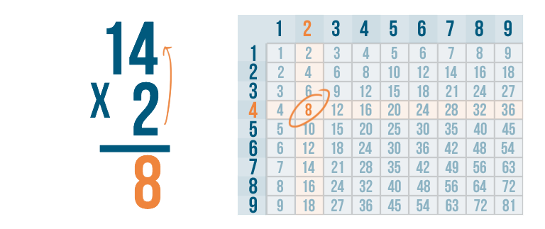 Now it's time to solve 2 x 4. We can use the times table.