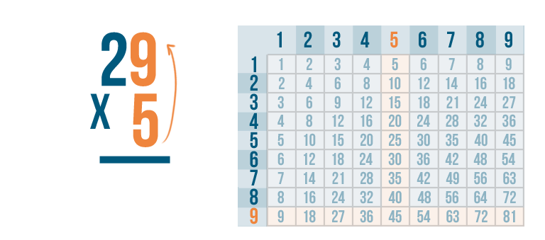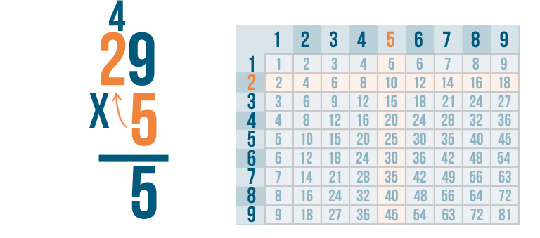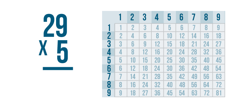 Let's try the problem we just looked at, 29 x 5.