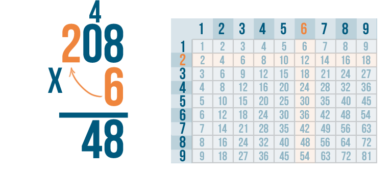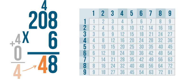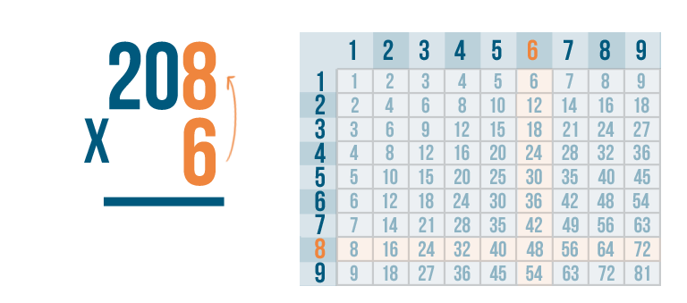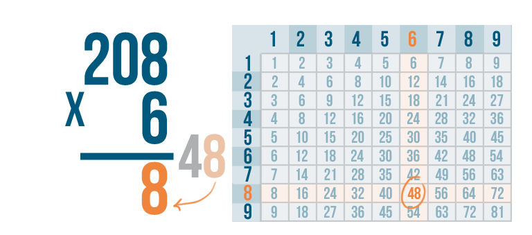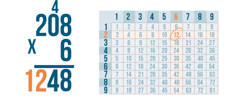 Let's try another problem, just for practice. 208 x 6.