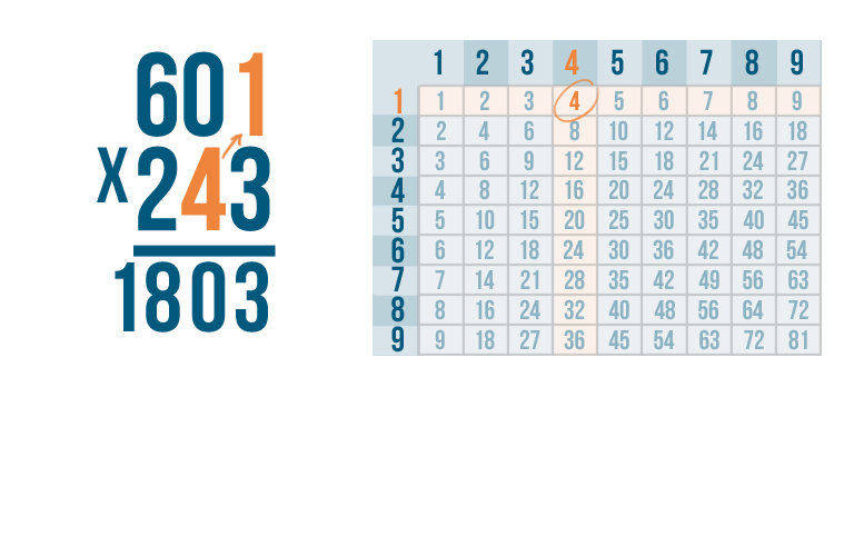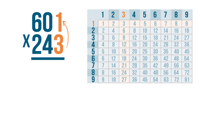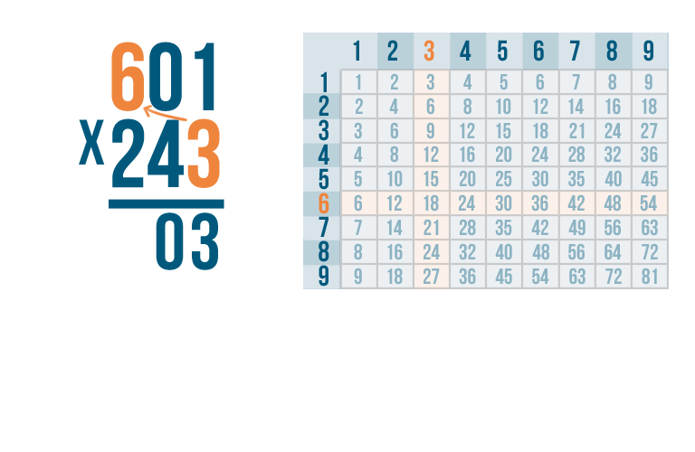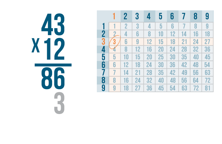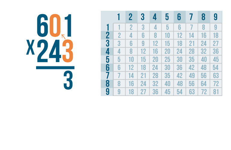 As always, start by multiplying the bottom-right digit by the top-right digit. So 3 x 1.