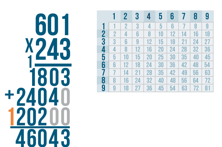 At first glance, stacked multiplication problems might look pretty complicated. Don't worry! If you can solve the problems in Introduction to Multiplication, you can learn to solve these problems too. To multiply large numbers, you'll use the same basic skills you use to multiply small ones. You can even use the same tools, like times tables.