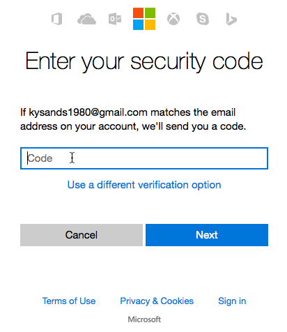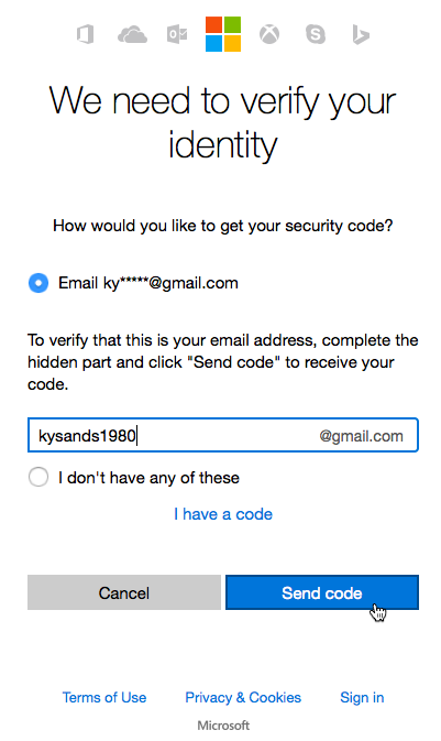 - Choose whether you want to have a security code sent to your alternate email or whether you'd prefer to provide an email address to have the code sent to, then click Send code.