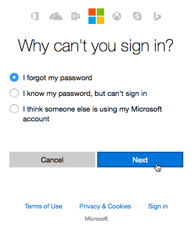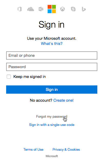 - Go to the Microsoft sign in page and click Forgot my password below the sign-in fields.