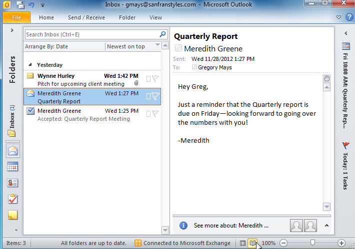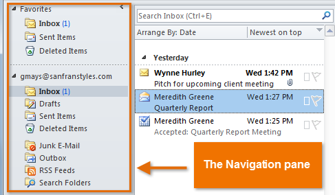 Click the buttons in the interactive below to become more familiar with the Outlook 2010 interface.