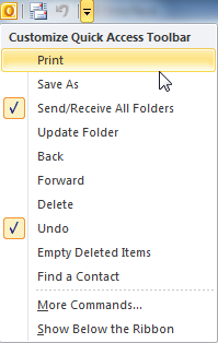 The Quick Access Toolbar gives you access to common commands, no matter which tab you're using on the Ribbon. By default, it shows the Check Inbox and Undo commands.