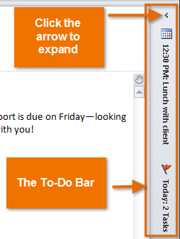A summary of your daily calendar appointments and tasks will appear in the To-Do Bar.