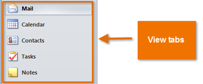 You will use the View tabs to switch between different views in Outlook, including Mail, Calendar, Contacts, Tasks, and Notes.