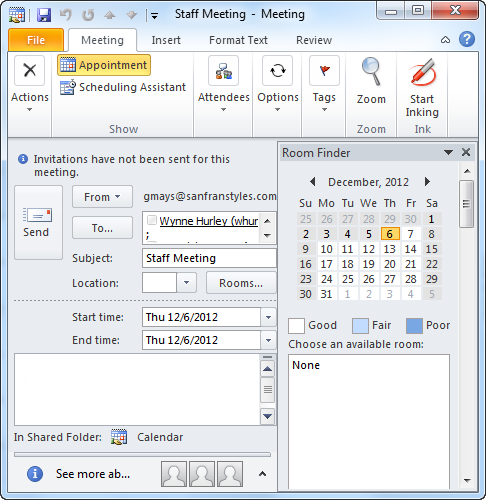 Upcoming meetings appear on your calendar just like appointments. Meetings will appear on everyone's calendar who has accepted the meeting request.