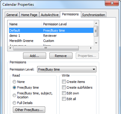 The commands in the Share Calendar group allow you to share your calendar with others and modify calendar permissions.