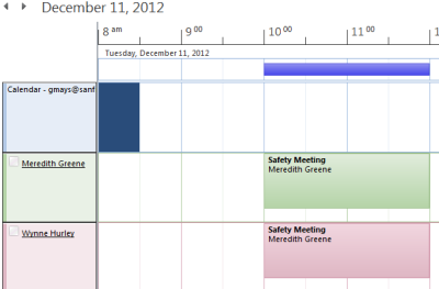 Schedule view allows you to view multiple schedules from shared calendars at the same time, making it easy to schedule group meetings.
