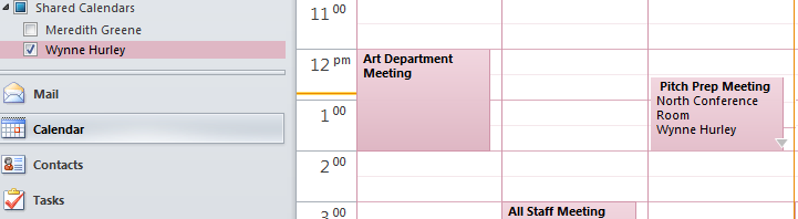 Any calendars that are shared with you will appear below your personal calendars. Click the checkbox to show or hide your shared calendars.