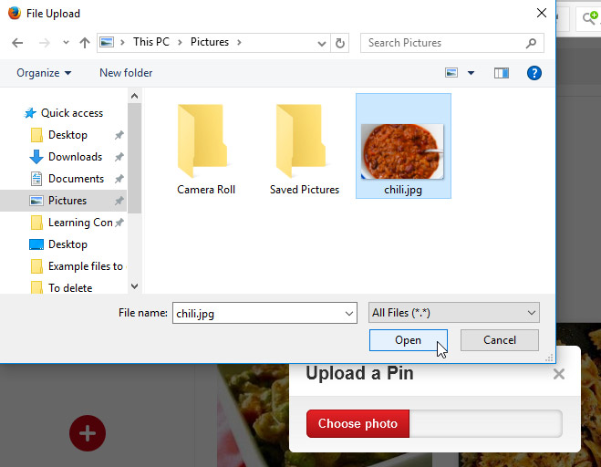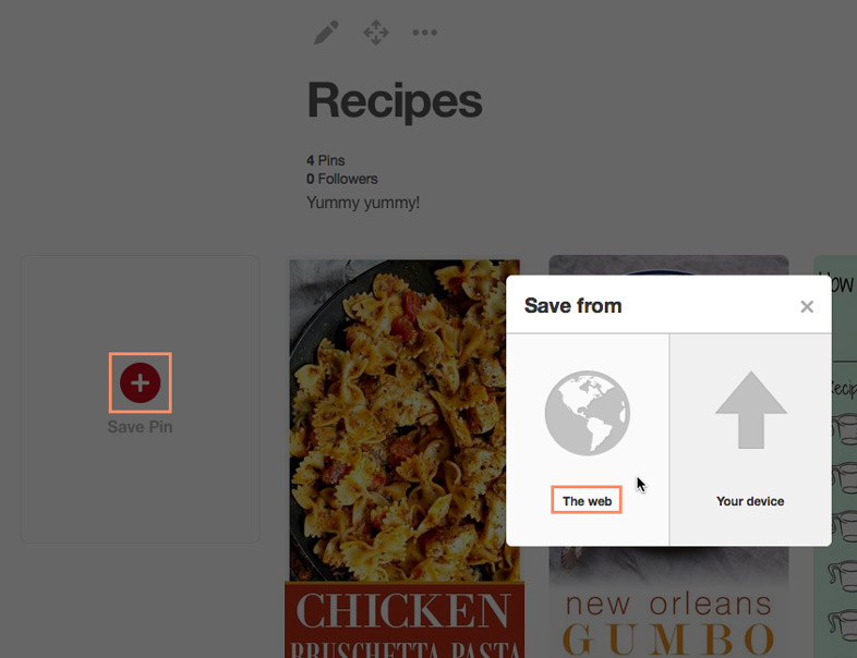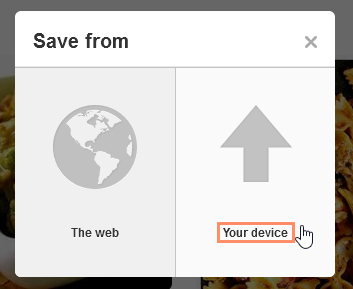 If you want to pin a picture from your computer, click the Save Pin button, then select Your device.