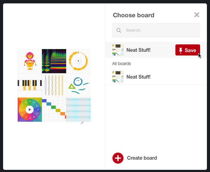 Finally, select the photo you'd like to use for the pin and click Save. Your pin will be created and added to your board.