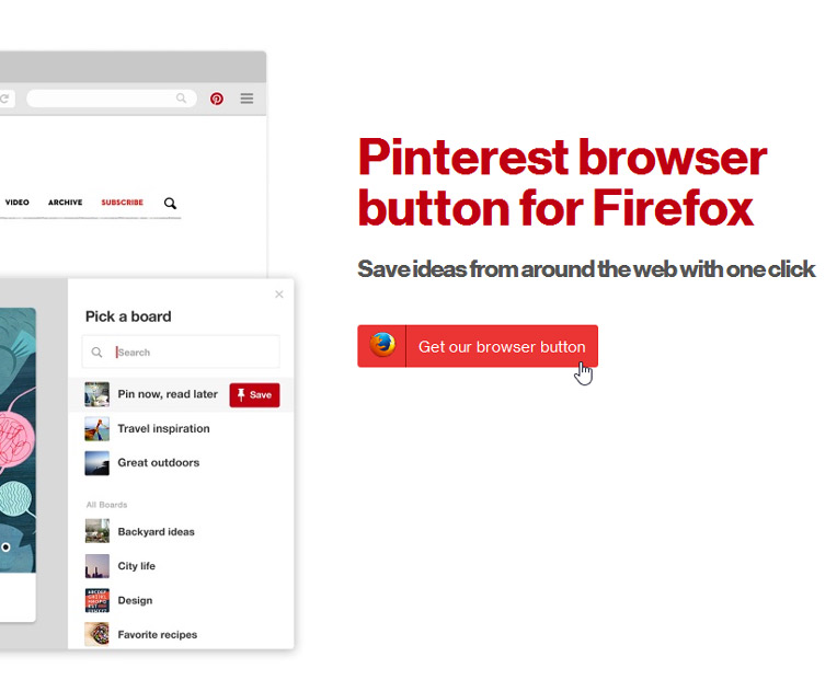 As you saw in the video above, installing the Pin It button is pretty simple. Just go to this page and click Get our browser button.