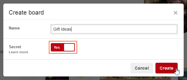 If you don't want anyone to see the things you're pinning, you can create a secret board. To do this, simply create a board as you normally would, but make sure to toggle the Secret option from No to Yes.