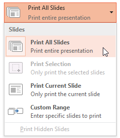 Here, you can choose to print all slides, the current slide, or a specific range of slides.