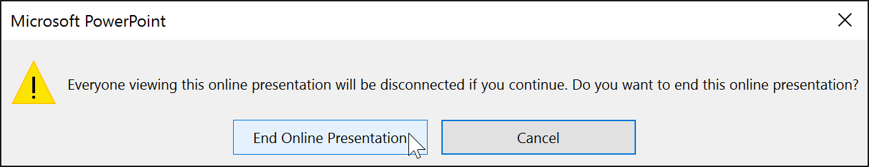 - A dialog box will appear to confirm that you want to end the presentation. Click End Online Presentation.