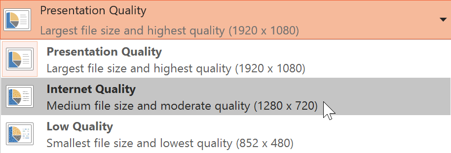 - Click the drop-down arrow next to Presentation Quality to select the size and quality of your video.