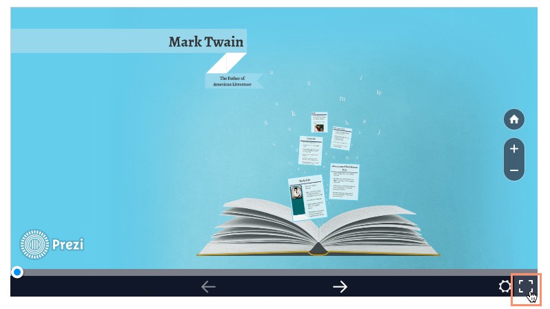 This will open your prezi in Present mode. You'll be able to switch between your frames and zoom in and out of the areas of your choice. To switch back to Edit mode, simply press the Escape key.