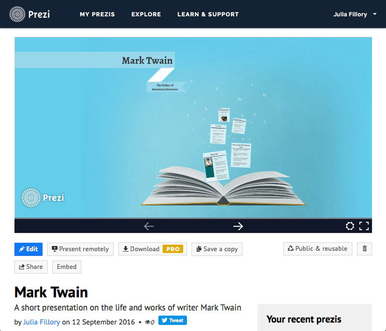 You can also open your prezi from your Prezi dashboard without having to enter Edit mode.