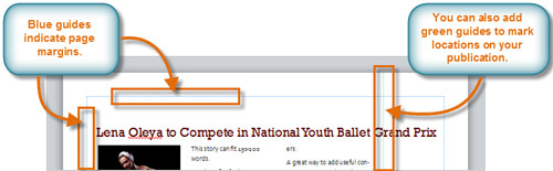 Guides are horizontal and vertical lines that appear on your publication as you're editing it. They help you align text, images, and other objects on the page.