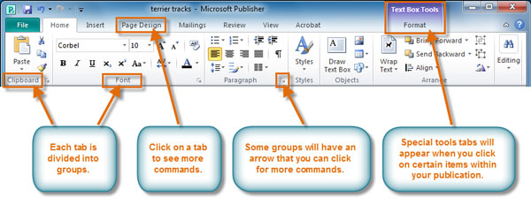 Review the interactive to learn more about the Ribbon and other features in the Publisher 2010 environment.