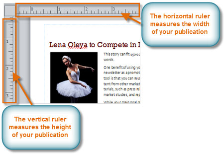 Rulers are located at the top and to the left of your publication. They make it easier to adjust and move items like images and text blocks with precision.