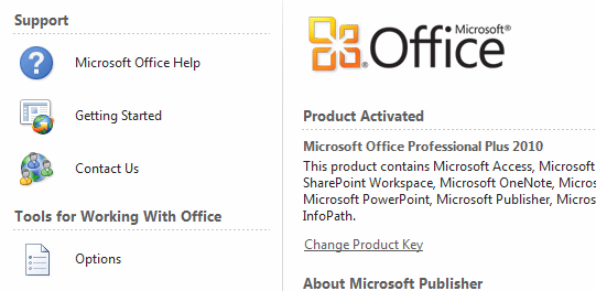 From the Help pane, you can access Microsoft Office Help or check for updates for your software.