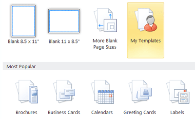 From here, you can create a new, blank publication, or you can choose from a large selection of templates.