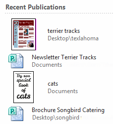 The Recent pane allows you to conveniently access recently edited publications and file folders.