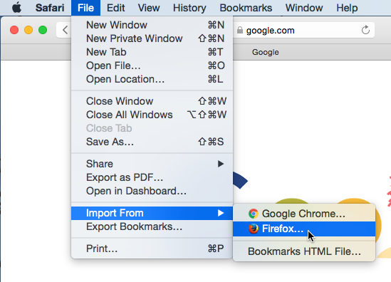 - Click File, select Import From, then select the browser from which you want to import bookmarks. For this example, we'll select Firefox.