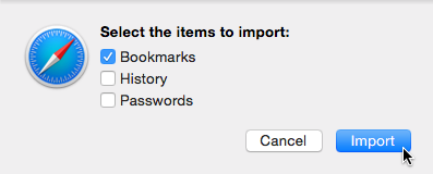 - A menu will appear. Select the items you want to import. In our example, we'll import only the Bookmarks. Then click Import.