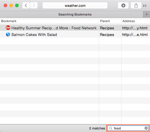 - Type an address or search term into the search bar. Any bookmarks matching the search will appear.